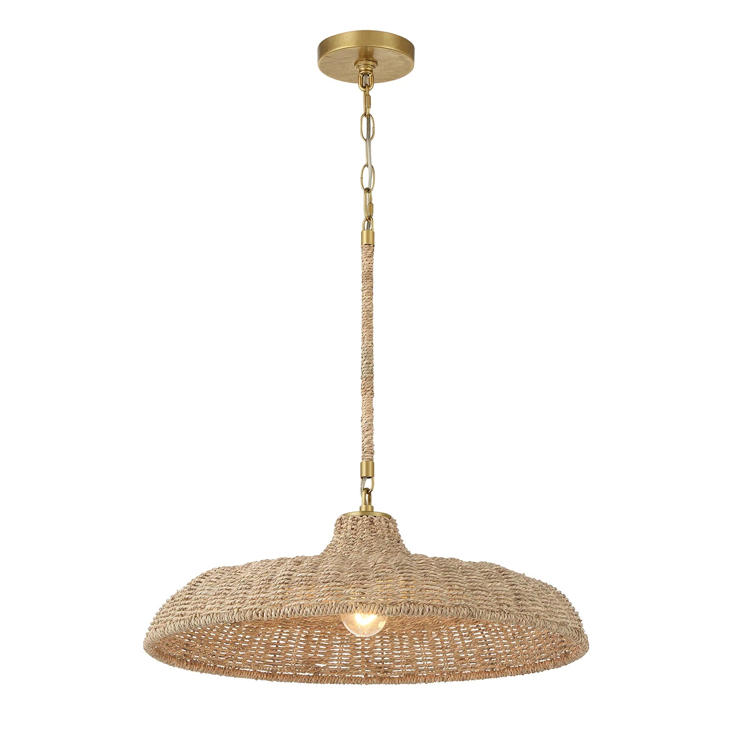 Showcases a skillfully artisan-crafted shade made from woven lake grass, known for its natural texture and warmth. The design features a gold-accented and wrapped stem, adding a refined touch to the organic material. Woven lake grass is durable and flexible, making it a practical choice for a lighting fixture that combines elegance with functionality. The Krista brings a nature-inspired charm to any space, seamlessly blending rustic beauty with sophisticated details.